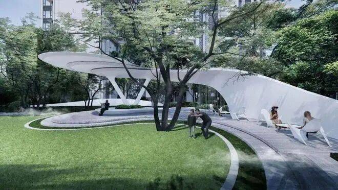 松林秘境中心庭院,全家社交休憩空间