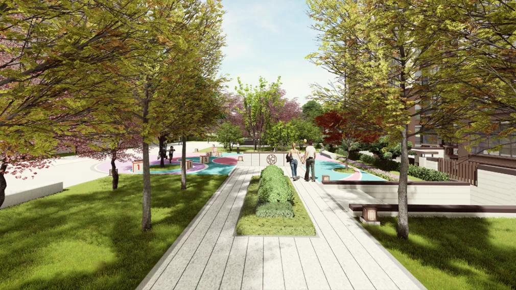 在绿化规划方面,设有约1200㎡私属休闲绿地公园,包含健康步道和休闲广场,不用出小区大门,就可以赏花赏景、与朋友闲聊,还能健身遛弯儿,美好生活。