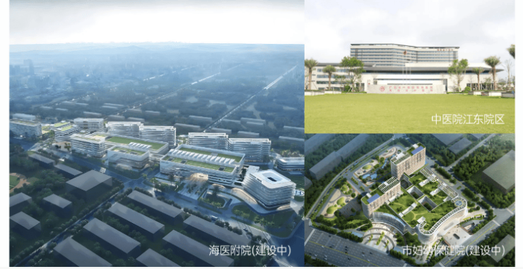 中医院江东院区、海医附院(建设中)、市妇幼保健院(建设中)
