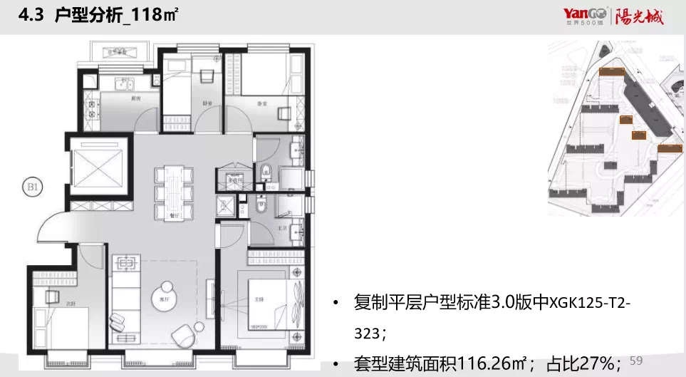 项目共有平层126套,在社区最北边排了两排,其余的是叠拼,共有208套。