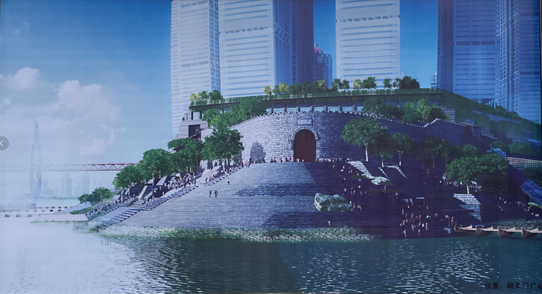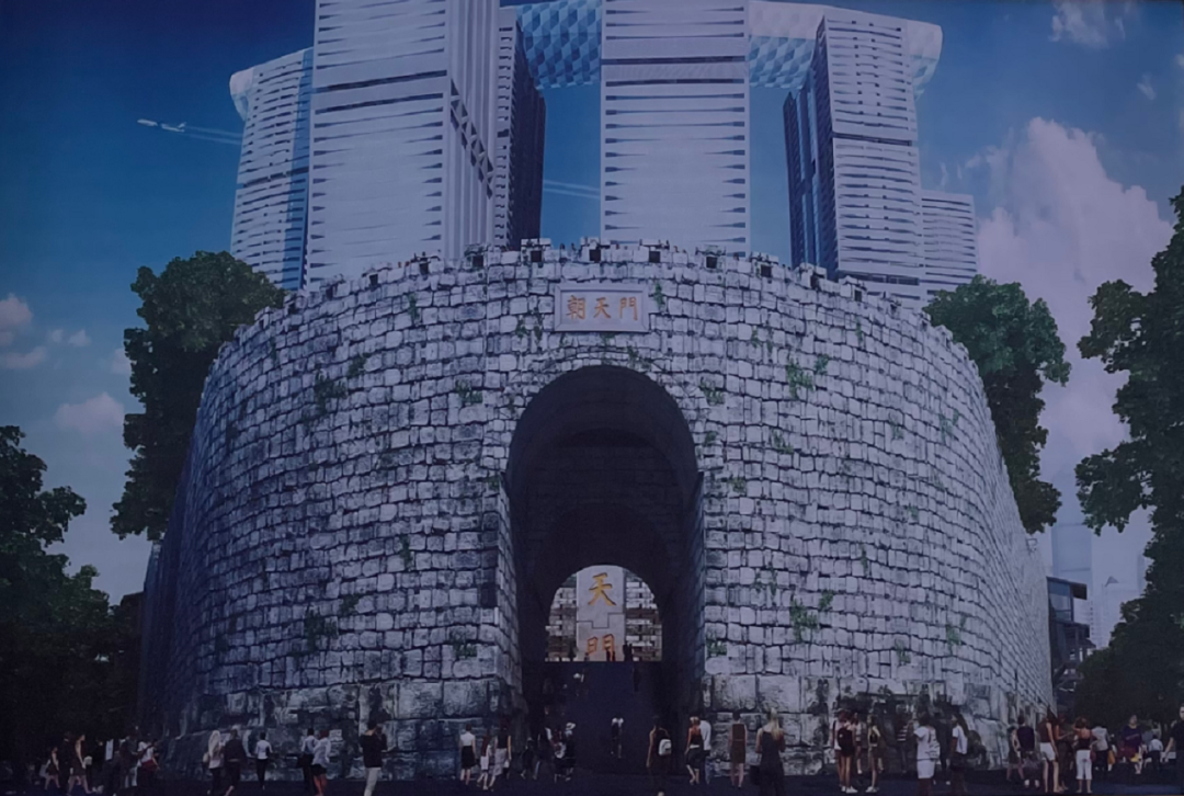 从效果图看,主要特点是增加了一段城墙。其建成后,与身后巨大体量、超现代风格的来福士,画风能否和谐相融,备受关注。