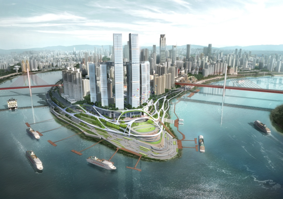 重庆市住建委于2018年10月启动了“两江四岸”方案设计国际征集活动,2019年,公示了长江北岸标段排名前列名。从现在的结果看看,似乎没有采用这一方案。