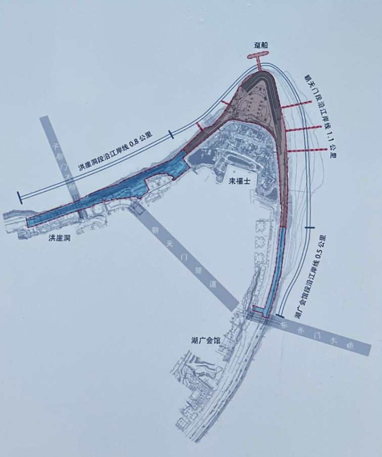 根据规划,重庆将对朝天门片区中的洪崖洞—朝天门—湖广会馆沿江区域总长2.4公里的岸线实施总体治理提升。