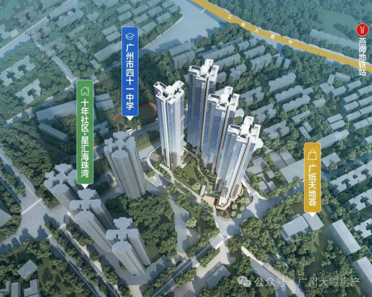 项目自身没有配建学校,但周边名校环伺,3km直线范围内包含广州市五中附属初级中学(省级)、广州市第41中学(省级)、宝玉直实验小学(光大校区)、江南外国语学校、工业大道中小学、红棉小学、海富小学、南燕小学、培红小学等9所学校环伺,拥有完善的区域教育体系。