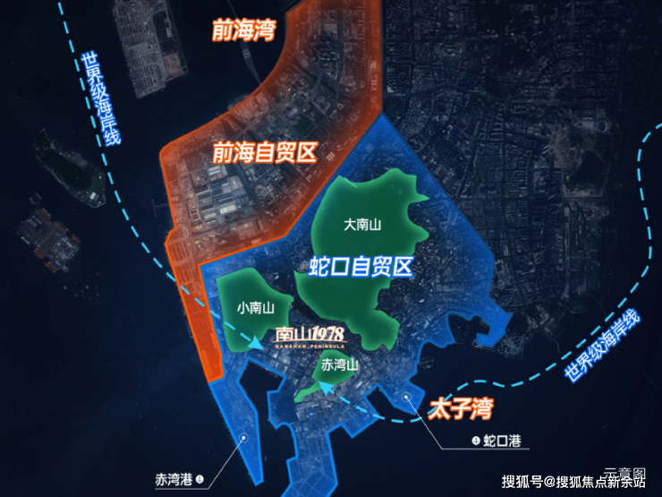 中国南山,深耕赤湾43载,以片区运营者角色,迭新赤湾约3.2平方公里土地,建面约47.7万方滨海TOD综合体(含总部办公、购物中心、高端住宅等)。