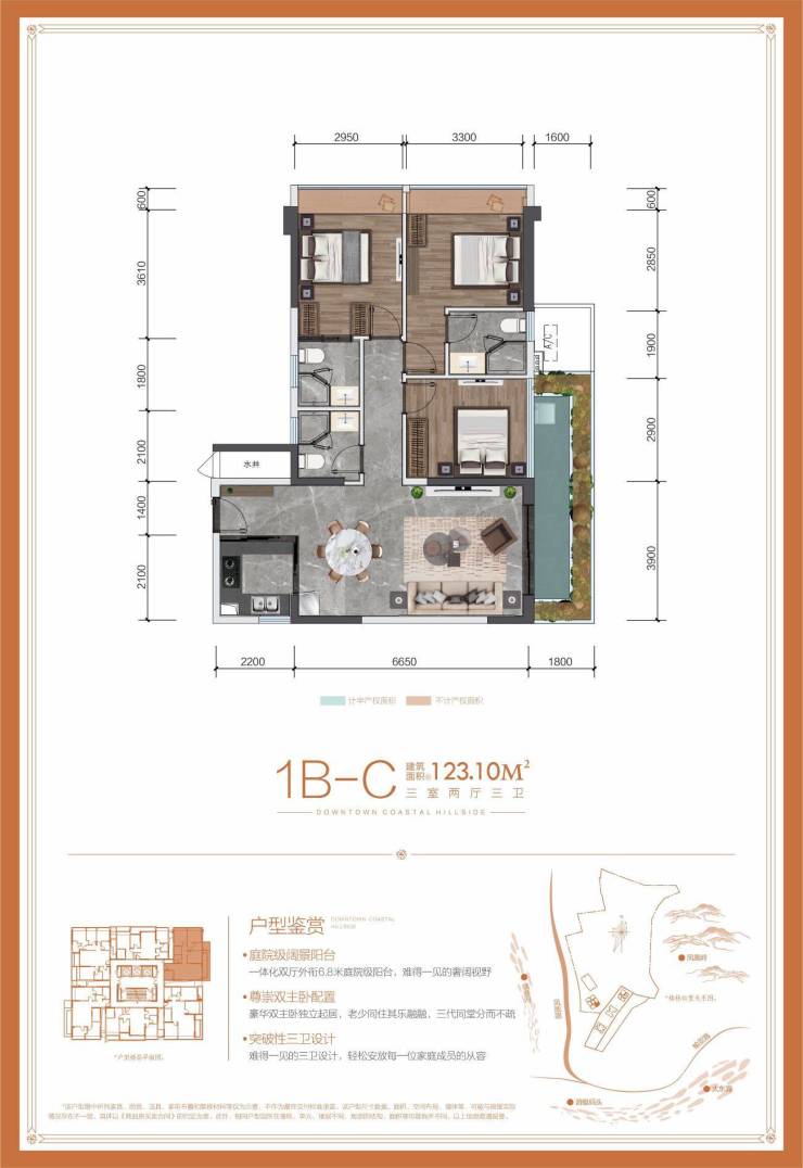 【C户型】建面约123㎡三室二厅三卫