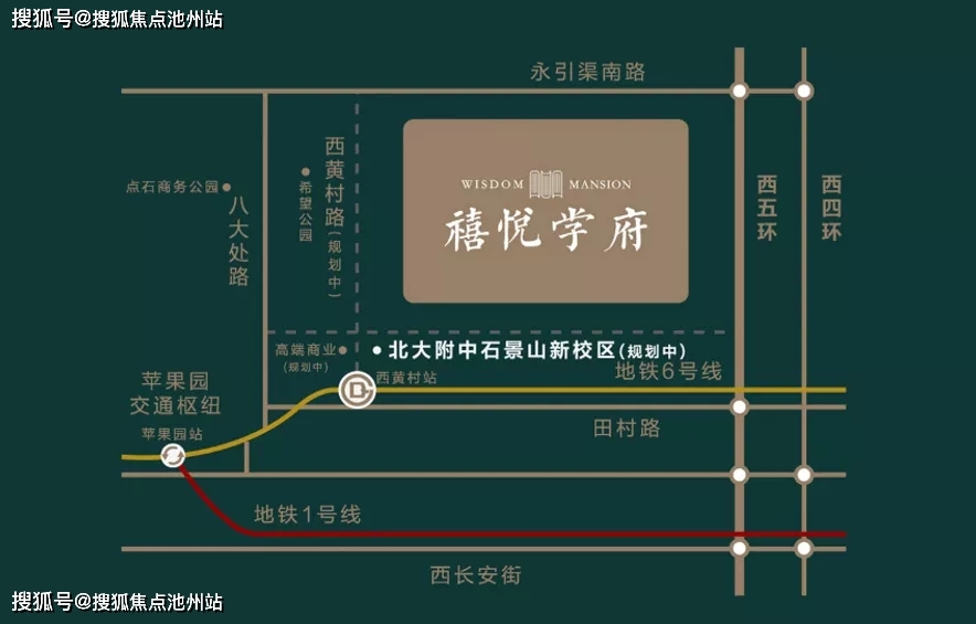 轨道交通:6号线西黄村站、1号线苹果园站
