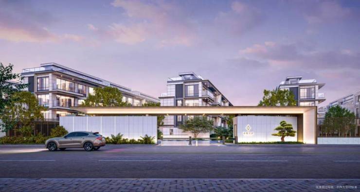 现代立面 四水归堂寓意美好!以斜切45°香槟色木纹铝板与银色金属线条搭配透明玻璃,营造现代时尚的立面风格;宽近32m恢宏大门,以威仪姿态礼遇归家享受;并遵循“四水归堂”的造园理念,臻筑美学园林大境,精巧布局一大中心花园、一条景观轴线、多重院落;更以三重归家礼序,营造酒店式归家场景,予生活尊崇仪式感。