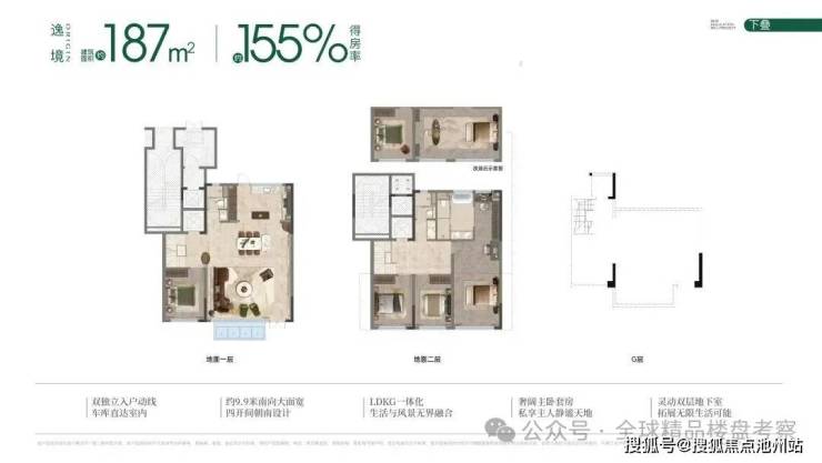 下叠拥有约9.9米南向大面宽、四开间朝南,双独立入户动线,LDKG一体化厅堂设计,并附带宽敞庭院及露台。