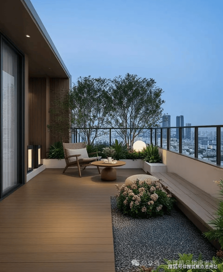 全屋做到了5花园设计,3层带南北双露台,4层带朝北大露台,屋面也不例外,超大露台空间一点不输下叠。