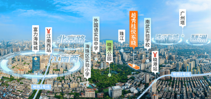 ✅海印桥旁、一桥东山、对望二沙,瞬达天河越秀、距离约8km内(约20分钟)通达珠城琶洲