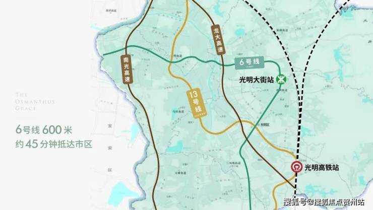 地铁6号线,起于福田科学馆站,经龙华、石岩、光明,终点为松岗,全线长近50公里,为深圳快速地铁线路之一,直达福田。