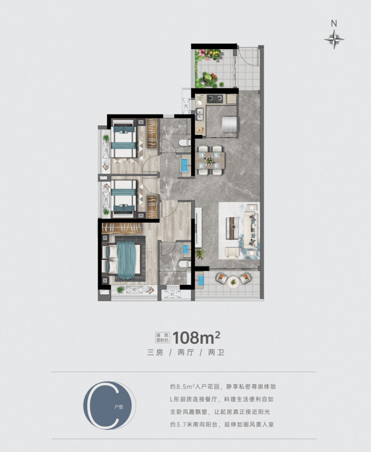 ①阳光城·丽景湾组团共设有10栋高层洋房,3栋公寓及1所幼儿园,全龄化社区设计给予家人舒适开阔的活动空间。