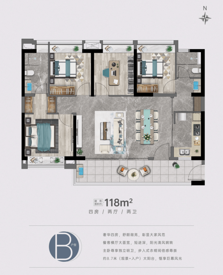 ②目前规划建面约87-118平方两至四房,户型方正,实用率高。