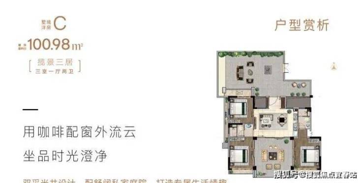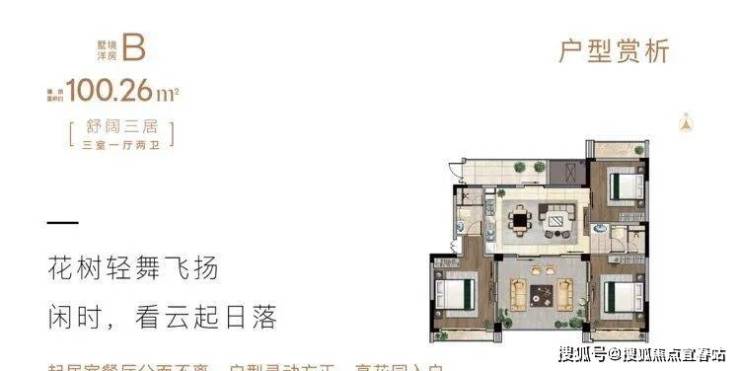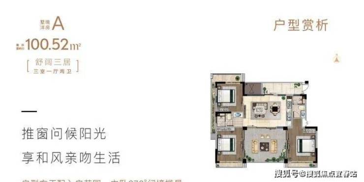 在售户型:三房两厅两卫100平;