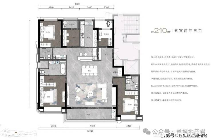 这个5个户型整体都非常相似,都是三开间朝南设计,区别在于客厅、房间的面宽在不断变大。但对于162平以上来说,这几个户型就非常一般了。