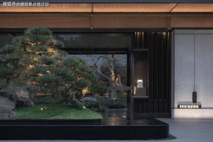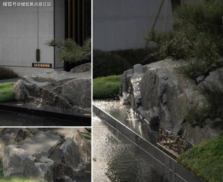 第一幅通过景墙的框景,使人们的注意力集中在中心的景观上,一松,一石,一池水便是画卷,文石水墨、无边静水,寓山于水,一静一动,动静之间又有无限深意,如《姑苏繁华图》中的一处缩影,松石相望,流水相伴;入口设置了三步台阶寓意:云接三级,步步高升,此外营造了两幅长卷画面。