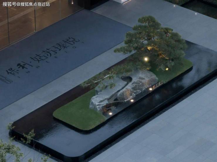 从之前公布的效果图来看,项目的门头采用了古铜铝板+石材打造,融入了白墙灰瓦、劲松流水等江南园林景观元素。