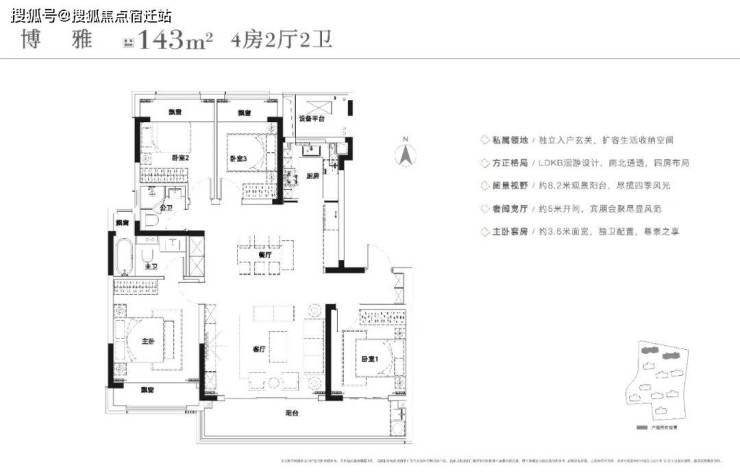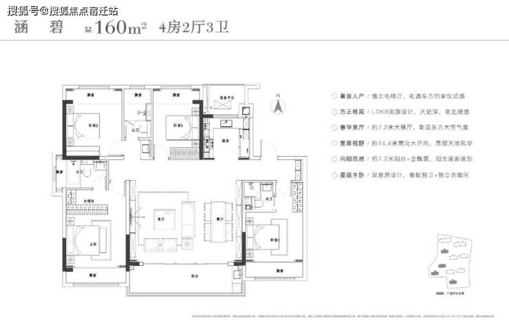在优越的空间利用率面前,其它闪光点都成了锦上添花。但基本上市场大平层必备的要素,ta都有——标配大横厅、标配洄游结构、标配动静分区、真南北通透等等。