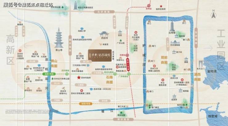 项目位于古城核心位置,距离苏州市政府仅1公里,坐享全套市政便民配套。此外,留园、西园寺、寒山寺等著名景点也都在项目1公里范围左右。