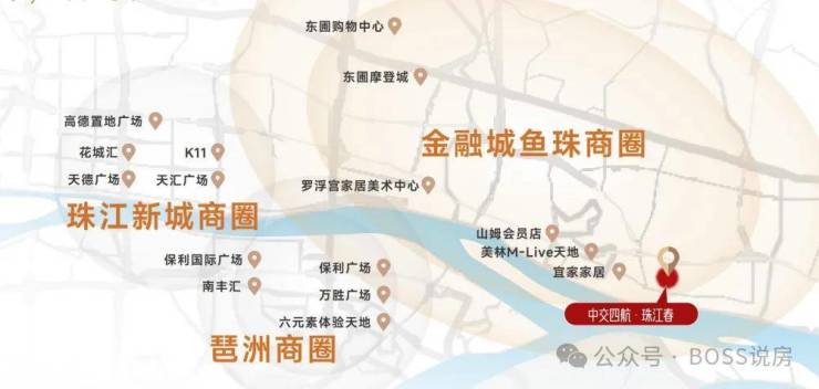 广州发展沿江东进,沿江路商圈、滨江路商圈、珠江新城商圈、金融城商圈、琶洲商圈已成熟发展
