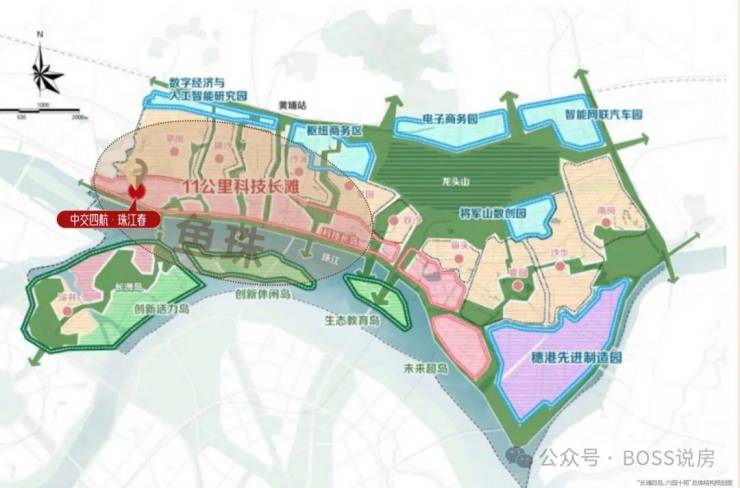 【总体规划】“长滩四岛,六园十苑”为框架的总体空间结构“11公里科技长滩”塑造为至美珠江岸线,汇集湾区创新企业总部