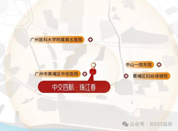 步行可达黄埔区中医医院(约 519 米),1.4 公里是广州医科大学附属第五医院,1.6 公里为中山大学附属第一医院东院(均为三甲),日常诊疗与重症救治都有保障。