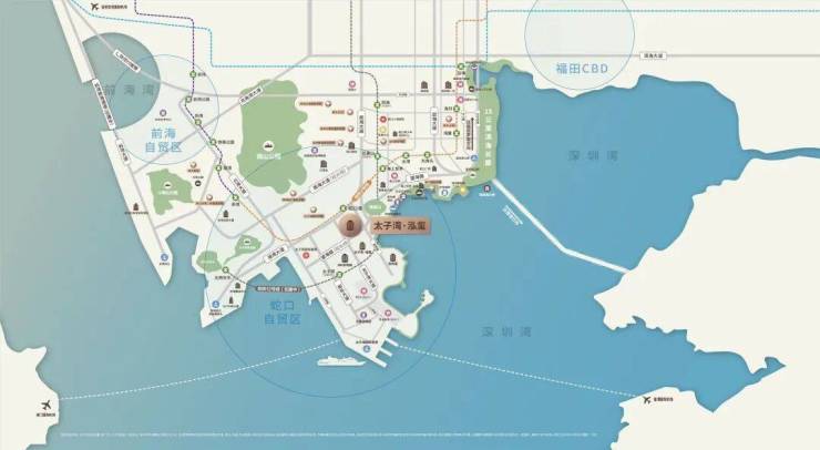 ◎ 多维交通:海(蛇口邮轮中心)、陆(南海大道、港湾大道、望海路)、空(深圳宝安国际机场、香港国际机场、澳门国际机场、珠海金湾机场)轨(2号线蛇口港站、5号线赤湾站、12号线太子湾站、口岸(深圳湾口岸)多维交通网,集汇聚于太子湾·泓玺,最终成就塔尖人物的全球商务生活圈。