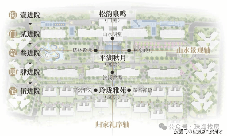 ▫汲取岭南四大名园精华,布局两轴三庭,五进六园,尽显归家礼序。