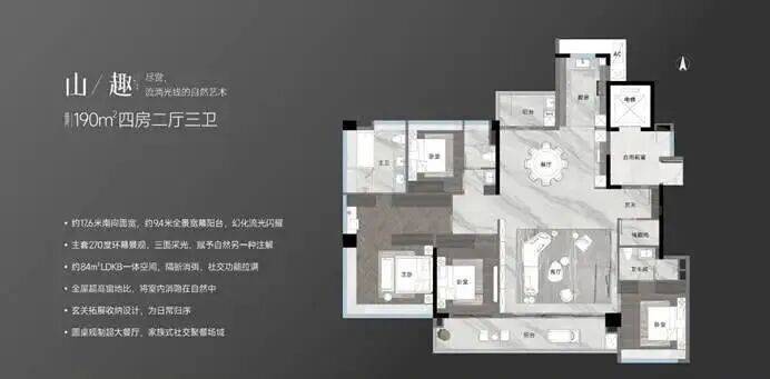 ⛰【山趣】建面约190㎡约17米南向面宽,全屋超高窗地比,全南向功能房,主套约270度IMAX级环幕视野