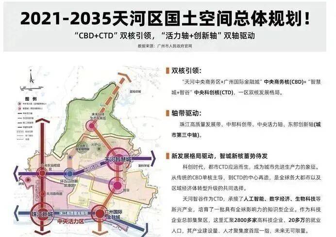 政策先行:在“十四五”规划中,天河的CTD中央科创区被提升至与CBD中央商务区同等的重要地位,形成天河的双核战略。