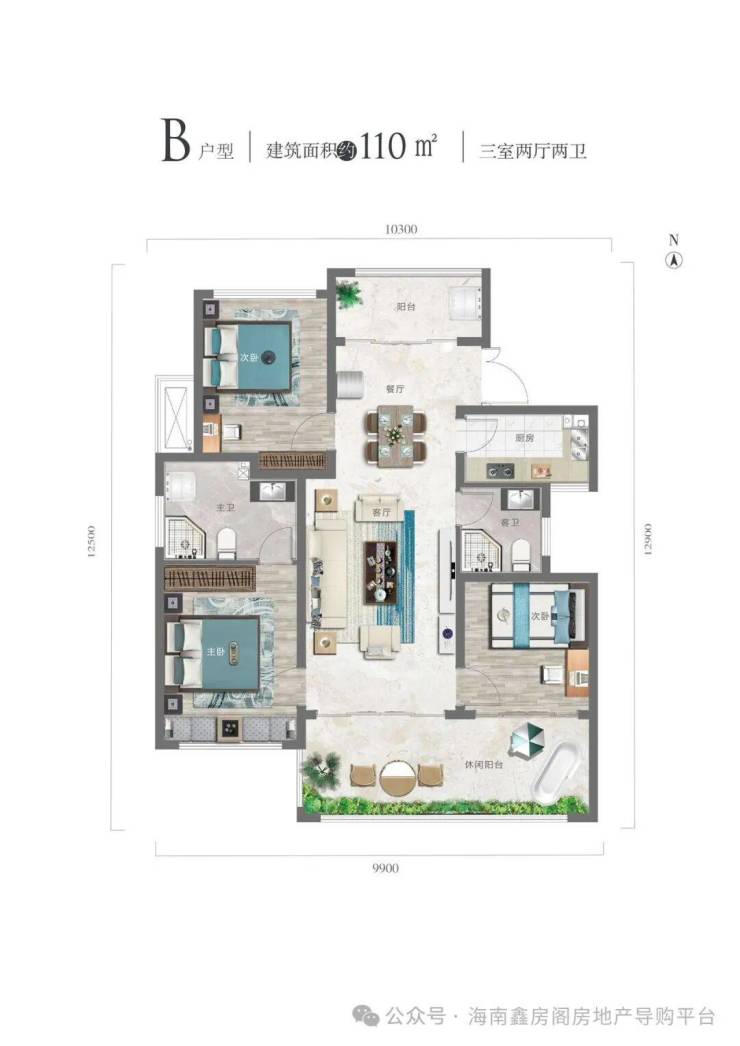 B 户型110㎡三室两厅两卫