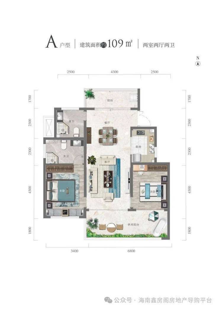 A 户型109㎡两室两厅两卫