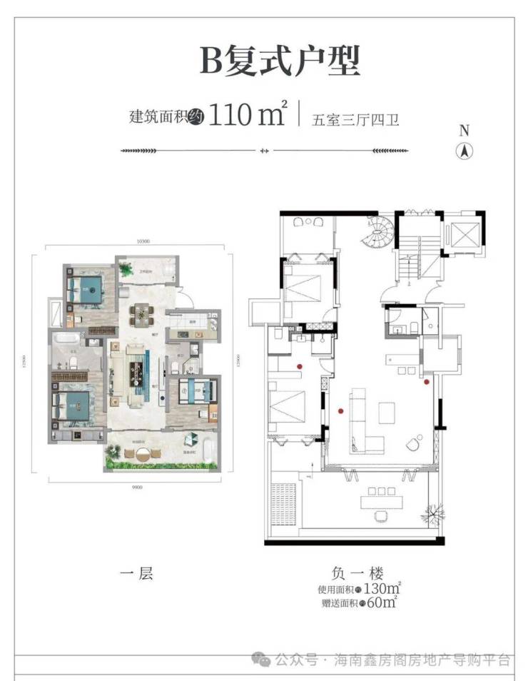 🏡复式产品产权面积约110㎡,5房2厅3卫,(实用面积约300㎡:产权110㎡,负一层135+赠送下沉庭院及采光井60㎡)单价:约27000元——31000元/㎡🤑