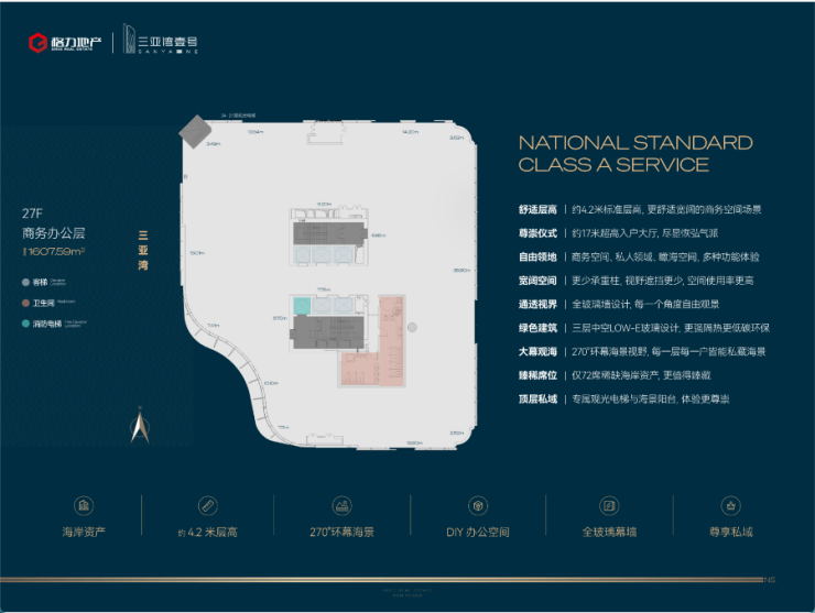 三亚湾壹号将以纯正英式物管尊崇服务,促进企业间信息、文化、人员的融合,为所有客户打造创新、互动、有温度的办公生态链。
