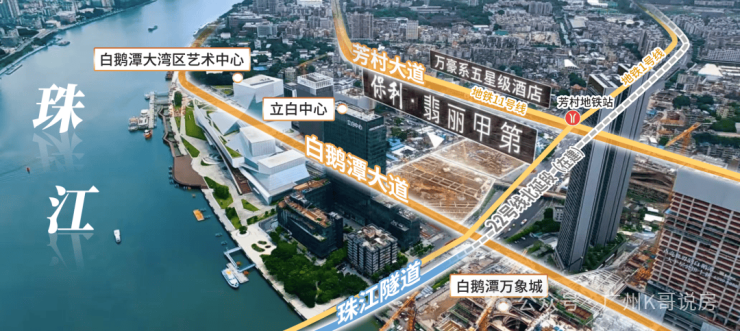 白鹅潭大湾区艺术中心就在楼下,广州首座M1级万象城,广州首个重奢滨江太古里也在项目附近。