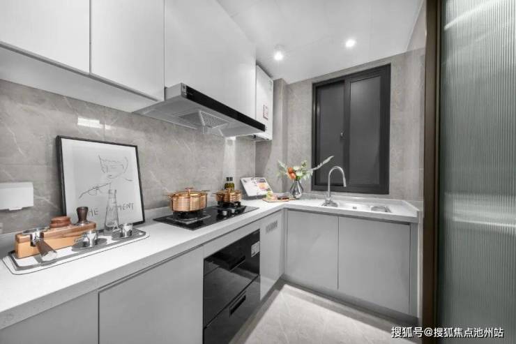 厨房配置全套华帝橱柜,精心选用方太油烟机、灶具、消毒碗柜等品牌电器,给予主人更美好的烹饪体验。