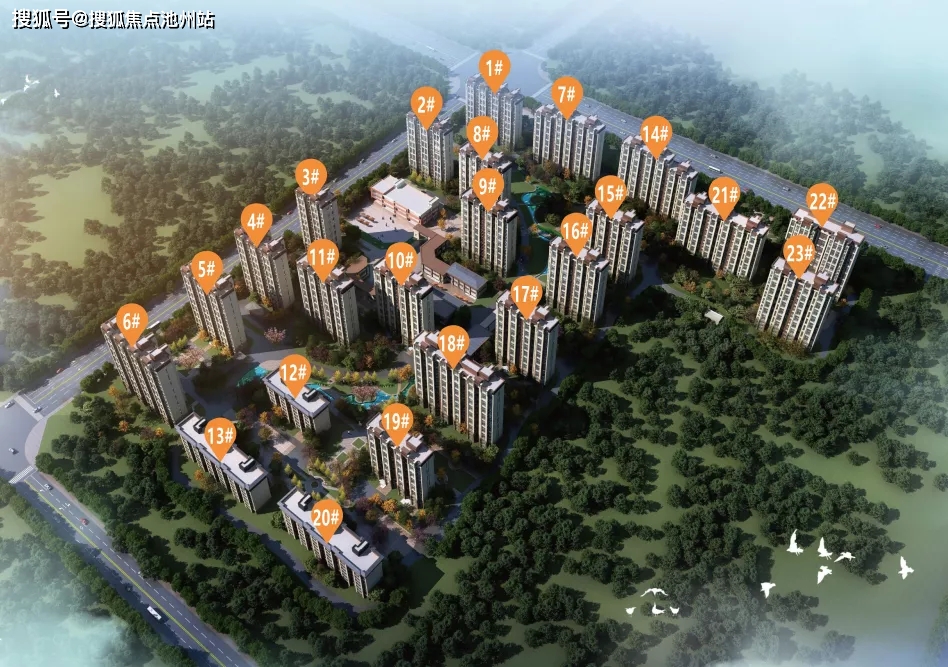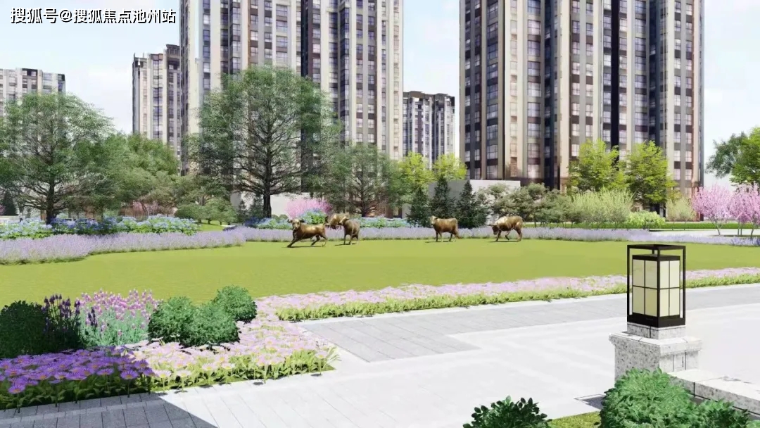 景观以现代手法演绎新亚洲风格的共享人文社区理念,运用言有尽而意无穷的造景手法,塑造传统尊贵气质,追寻“活力共享,幸福计划”的踪迹,形成人文关怀、趣味安全、典雅氛围的社区,从而打造出 “两轴一环多节点的景观骨架、包括北侧带状公园,中央健身公园区,入口形象景观轴,十字商街轴、1.5公里健步道、宅间花圃等特色景观体系。”