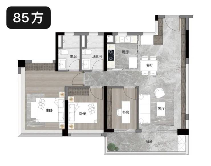 【约85㎡ 3空间2卫】