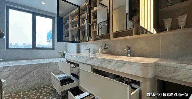 在功能主义层面,绿城·沁百合展现出对高端生活的深度理解。项目创新性地构建了完整的全屋收纳体系:L型玄关柜兼具综合衣帽鞋柜与家庭仓储功能,妥善收纳婴儿车、行李箱、露营装备等大件物品;整体橱柜配备调味拉篮、随心抽、挂门宝、水槽下翻等精细化模块;主卫三面开镜柜集成美妆冰箱、吹风机卡槽、插座等实用功能。更值得一提的是,项目在地下车库为每户配备带密码锁的独立储藏柜,这一在苏州市场罕见的贴心设计,彻底解决家庭车载杂物收纳难题。