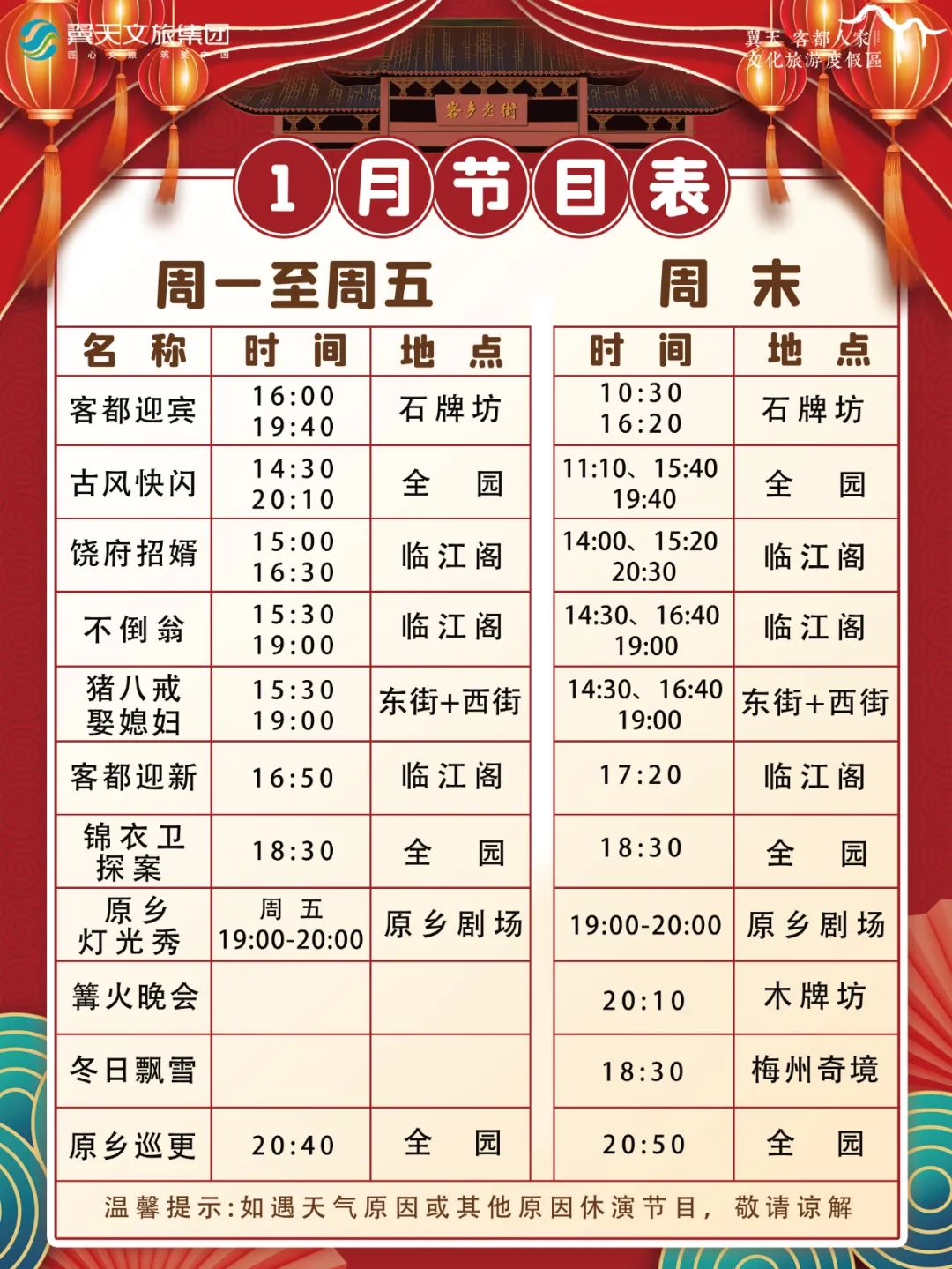 虎年大吉灯光大秀绚丽璀璨雪花飞舞HAPPY SPRING FESTIVAL时间:2月1日-2月7日19:00-20:00地点:客都人家·原乡剧场水舞台主题灯光秀,欢乐祥和年