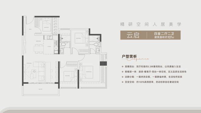 小区主力户型从89㎡三房到138㎡四房不等,其中建面约107㎡的“云启”四房两厅两卫尤其值得关注。客厅与阳台打通后形成近6米的采光面,主卧带独立卫浴和L型飘窗,次卧可灵活改造成书房或儿童房。更实在的是,在广州新容积率政策下,项目通过优化公摊,把实用率做到较高水平——比如89㎡户型实际使用面积接近78㎡,日常收纳和动线都经得起推敲。