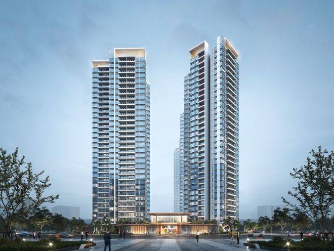 建筑外立面采用浅灰铝板与玻璃幕墙搭配,线条简洁利落,没有过度装饰。整体风格呼应“设计之都”的调性——不张扬,但注重细节。楼栋布局上,项目通过错落排布保证多数户型南北通透,部分高层单位还能远眺白云山轮廓。这种克制的设计语言,反而让社区显得更安静、宜居。