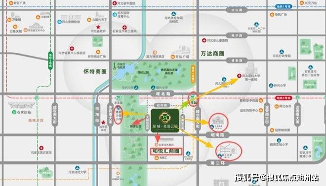 【脉络】项目南接南二环,北邻地铁三号线,塔南路、塔北路、体育大街等城市脉络通达全城畅达无阻;