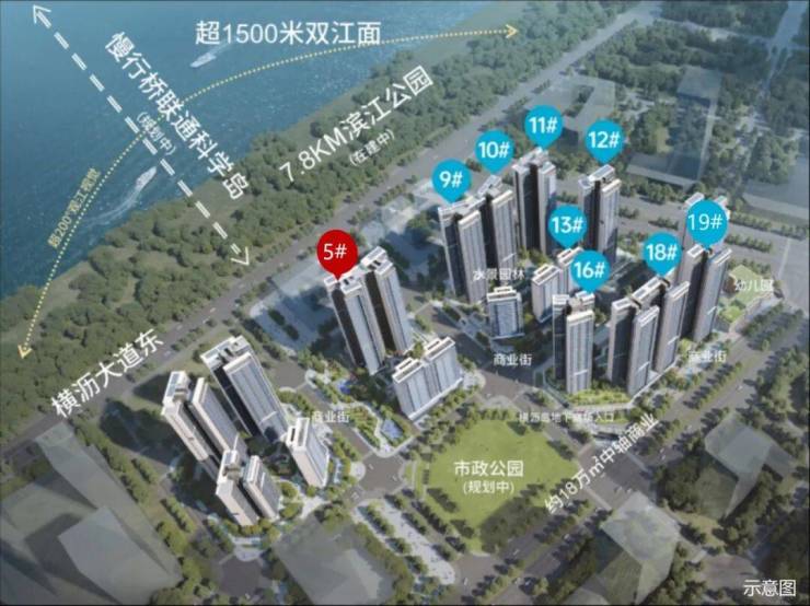 为实现大湾区城市会客厅的畅联,项目北侧打造过江人行桥(规划中),东侧打造过江隧道,实现明珠湾金融岛、科学岛的双岛资源共享,打造湾区中央商务区;深业颐泽府作为国际金融岛唯一“府”系备案项目,坐拥双岛繁华配套,实至名归的“岛中岛 世界府”。