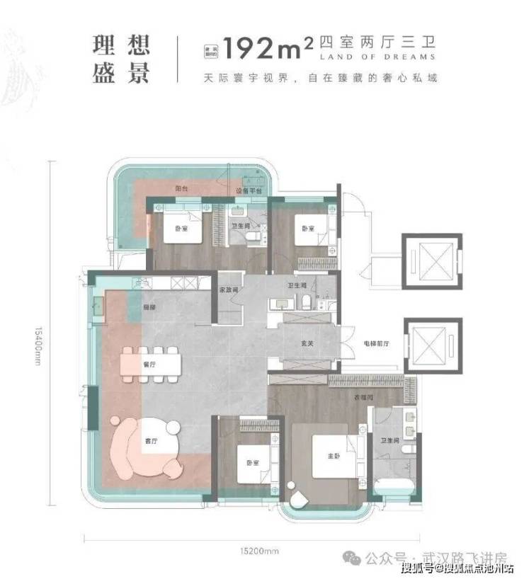 ③192㎡户型,四室两厅三卫。