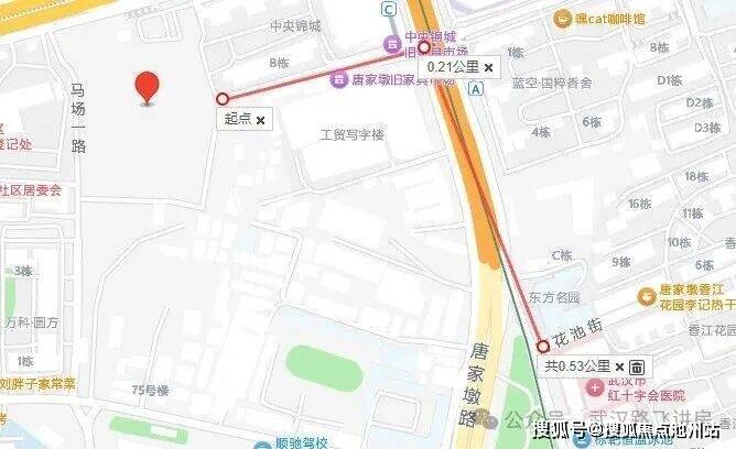 该项目坐落于江汉区唐家墩路与马场路交叉口,地处二环内核心区域,规划有 A、B、C 三个相邻地块,布局紧凑连贯。