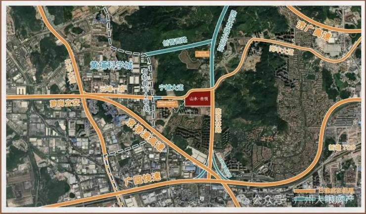 以项目为原点,紧邻宁埔大道、广园快速路、开创大道等城市主干道,一路之隔科学城,半步黄埔、一步天河,还有新塘万达,永旺,南岗万达等大型商圈环伺。