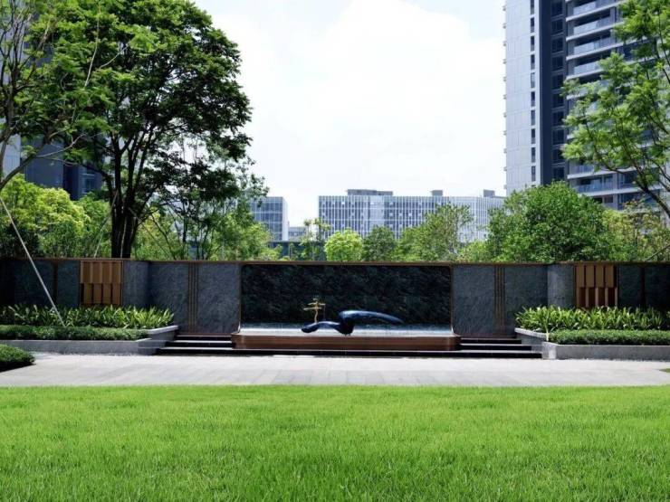走进社区,约1.4万㎡的沉浸式围合园林已然成型,香樟、凤凰木等名贵树种错落有致,叠水景观、儿童游乐区、长者休闲区等功能空间一应俱全。
