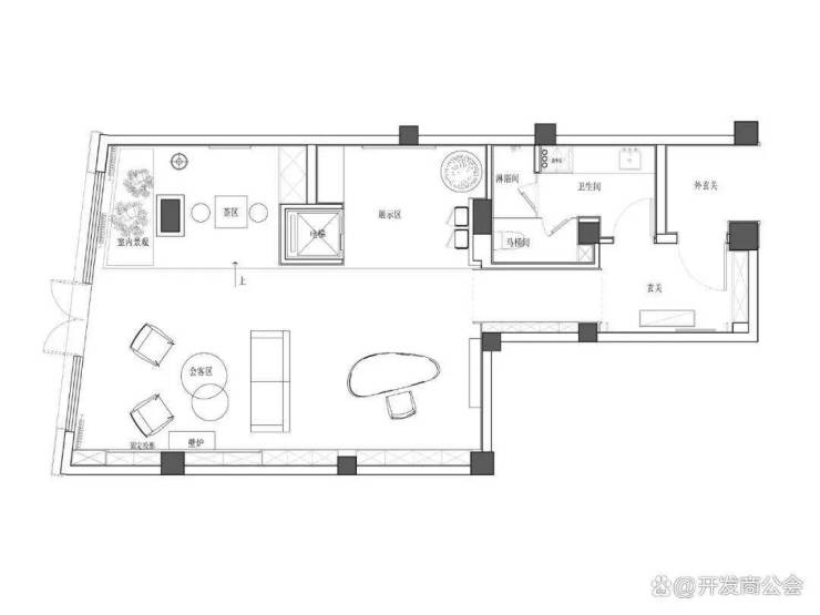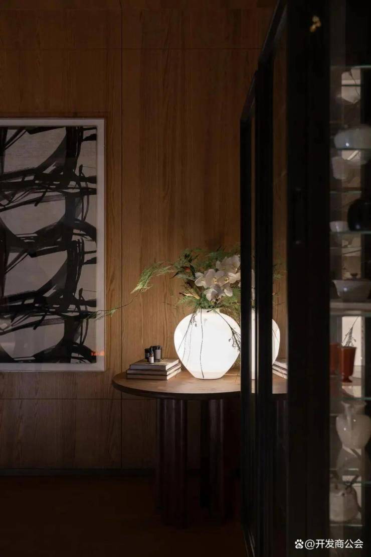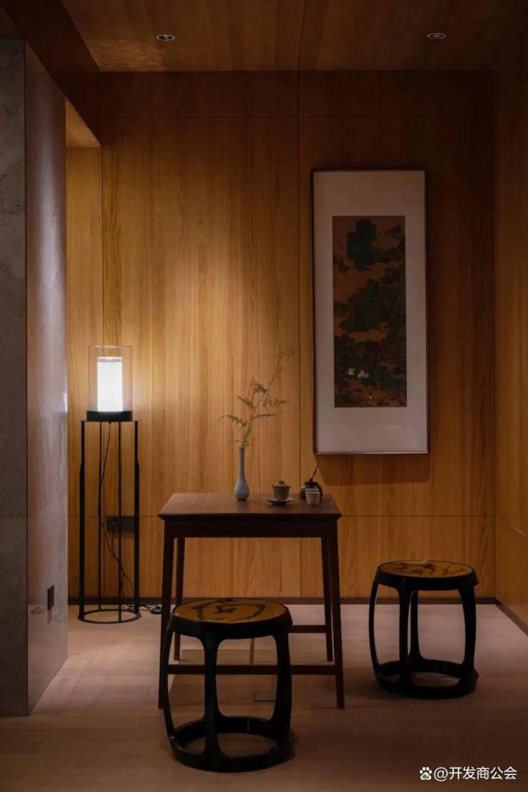 负一层设置茶室、会客厅、展示区、玄关,满足主人日常私人休闲及待客需求。